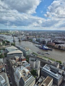 Ikonickým londýnskym dvojposchodovým autobusom sme sa prepravili k Pamätníku Veľkého požiaru Londýna (The Monument to the Great Fire of London). Odtiaľ sme išli do Tower of London, kde sú okrem iného vystavené aj slávne korunovačné klenoty. Prehliadka so sprievodcom v Toweri môže byť veľmi zaujímavá. Prevedú vás ňou veteráni Britských ozbrojených síl, ktorí dnes už namiesto stráženia paláca sprevádzajú návštevníkov a rozprávajú im príbehy o histórii Toweru s vlastným humorom. Neskôr naše kroky mierili na známy most Tower Bridge, ktorý sa nachádza kúsok od Tower of London a prechádza cez rieku Temža. Navečer sme išli už len na vyhliadkovú budovu Sky Garden, odkiaľ sme mali úžasný výhľad na celý Londýn.